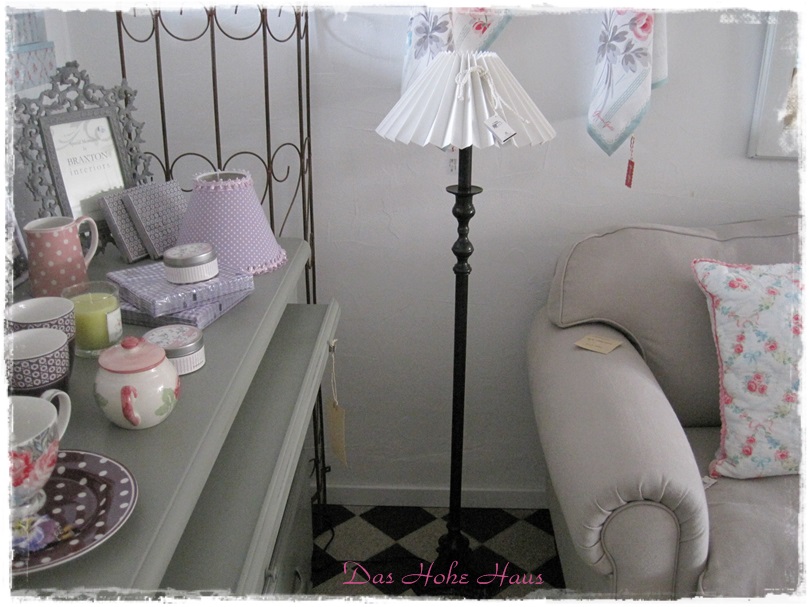 Dunkelbraune Stehleuchte aus Messing, E27, Höhe ca. 152 cm mit plissiertem Lampenschirm in off white von Lene Bjerre