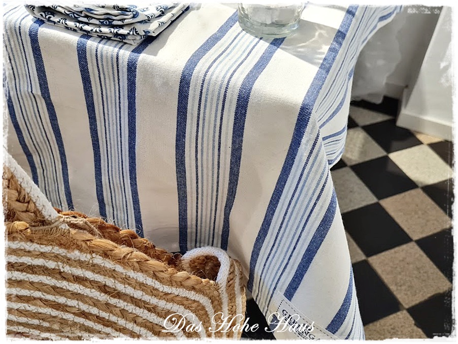 Hübsche Tischdecke mit frischem Streifenmuster, 100% Baumwolle, Maschinenwäsche, Maße 145 x 250 cm, 100% Baumwolle