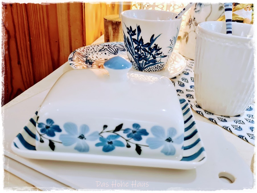 Burtterdose mit hübschem Blumenmuster in blau/weiss von Greengate, Spülmaschinengeeignet, 8x12x16 cm