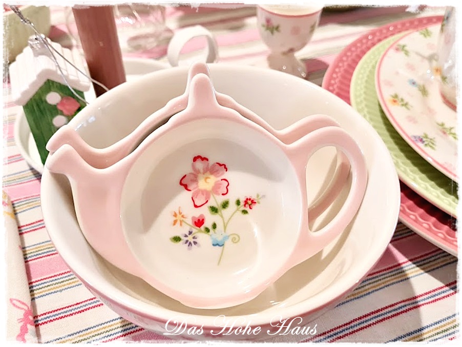 Süße Teebeutelablage in Teekannenform von Greengate, spülmaschinenfest, Durchmesser 10cm
