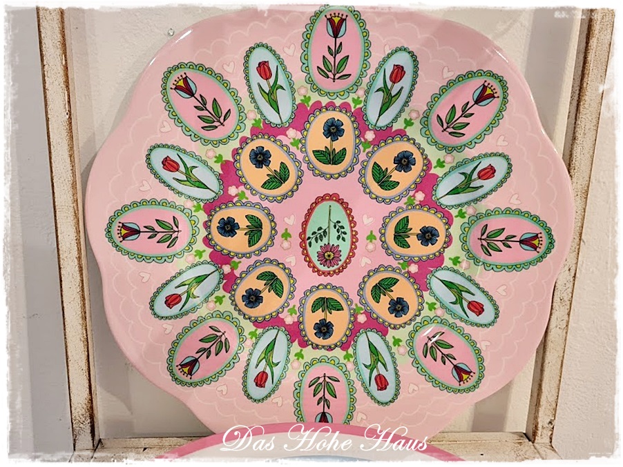 Großer Melaminteller mit Blumenmuster in süßer Blütenform von Overbeck & Friends, Durchmesser 26cm, spülmaschinenfest