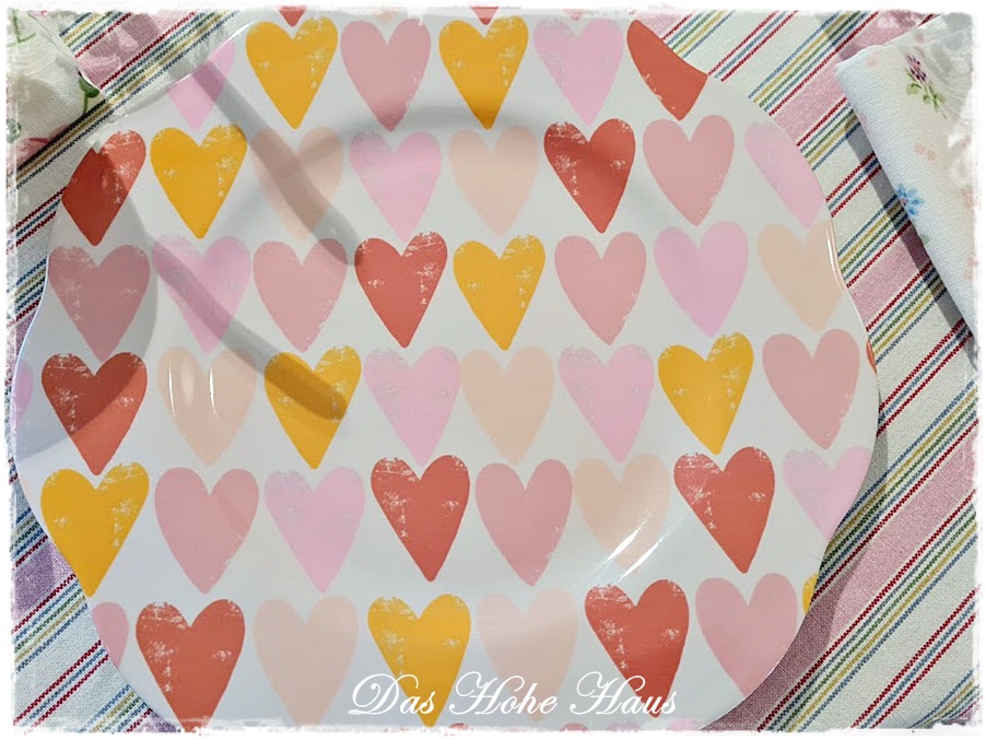 Großer Melaminteller mit Herzen in süßer Blütenform von Overbeck & Friends, Durchmesser 26cm, spülmaschinenfest