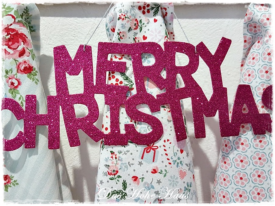 Knalliger Glitterschriftzug MERRY CHRISTMAS in pink zum Aufhängen von Overbeck & Friends,ca. 10 x 30 cm
